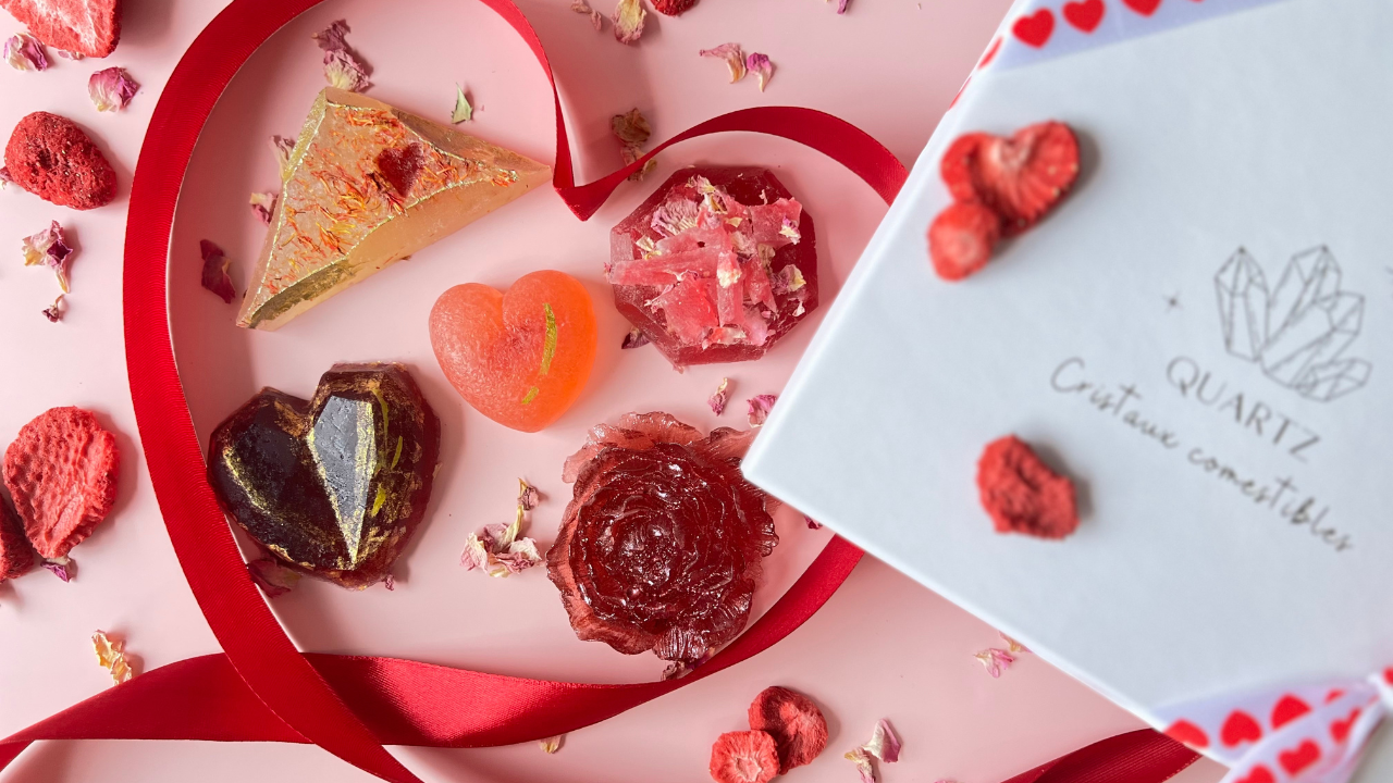 Our edible crystals are made from fruit purees, tea infusions or syrup made from natural aromas according to perfumes, sugar, and seaweed. The latter, having gelifying properties, allow us to shape them by hand.